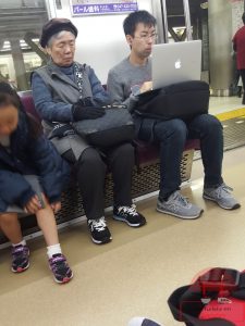 En las estaciones más concurridas como Shibuya puedes ver a a gente de todas las edades platicando y riéndose. También vez muchísima gente borracha, hombres y mujeres por igual que simplemente van dormidos o agarrados de algún tubo y moviéndose como espaguetis por el balance del tren.