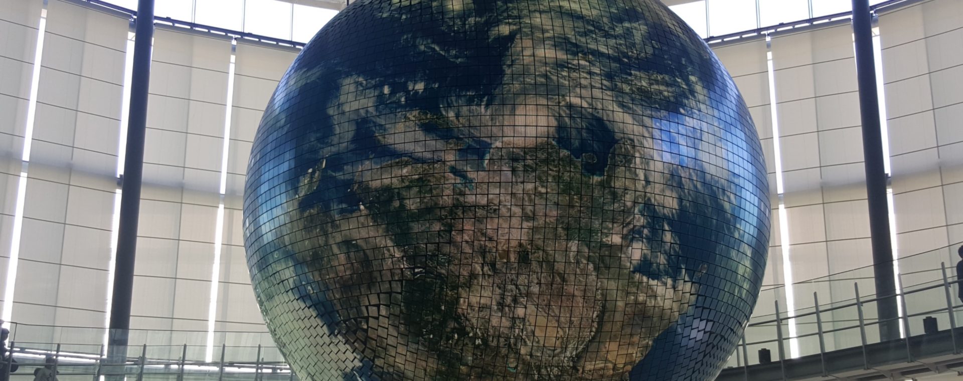 Lo primero que van a ver es la tierra! este geo-cosmos (así lo llaman) está hecho de pantallas LED y todo el tiempo está en movimiento.